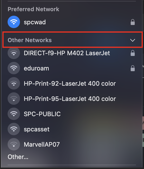 2. Select "eduroam" if it appears. If it does not, click on other networks before clicking on "eduroam".